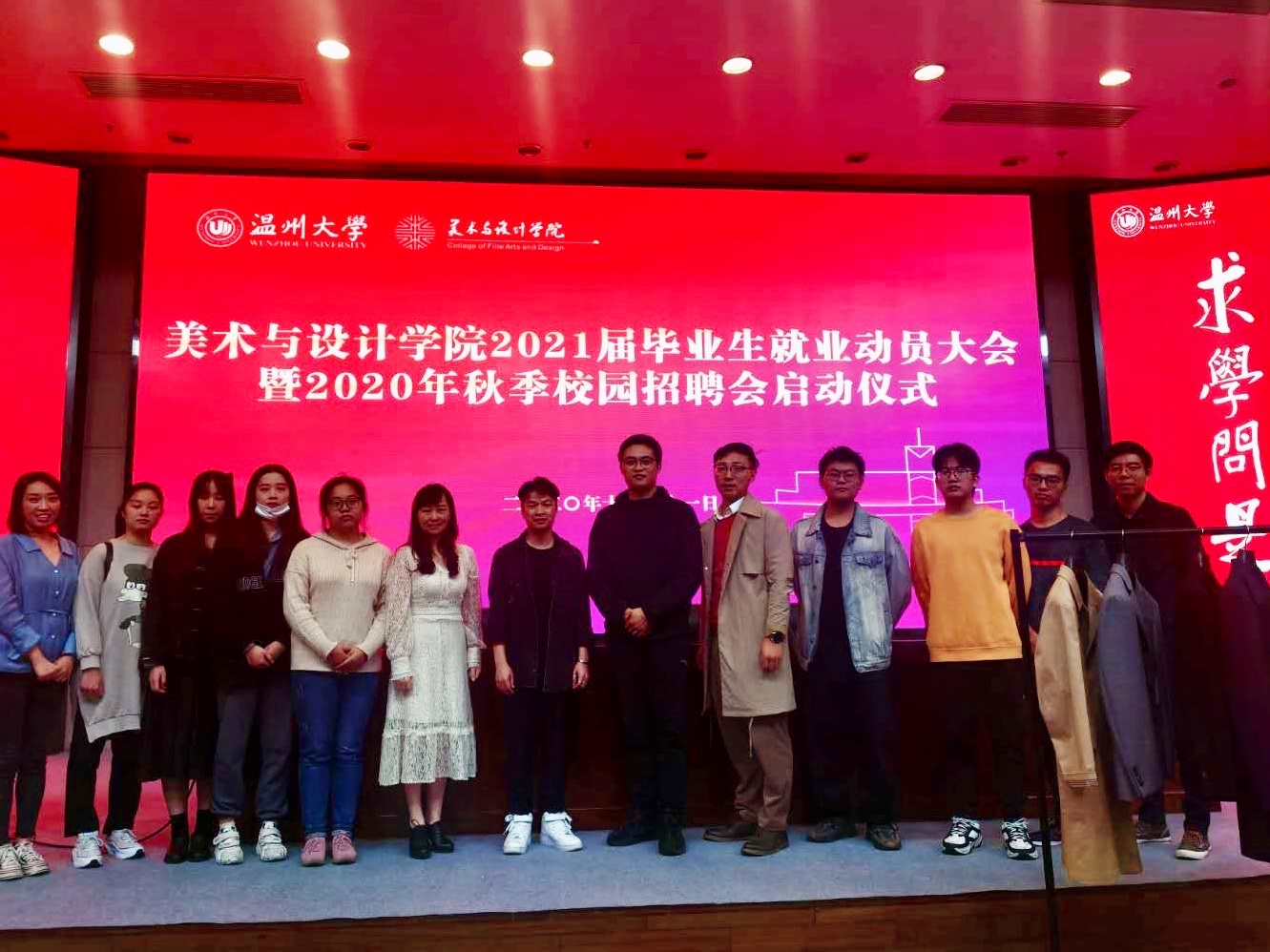 为进一步做好2021届毕业生就业工作,10月21日晚18:30,公司于图书报告厅举行了2021届毕业生就 业动员大暨2020年秋季校园招聘会启动仪式。莅临本次活动的有公司党委副书记杨丽君,东蒙集团技术 委员会主任陈波、东蒙校招主管郑政、温大14服装设计与工程本(卓工)员工沈宇烽。大会由美术学院学 工办主任杨鹏老师主持。 杨鹏老师解读就业手续、政策等 大会开始,学工办主任杨鹏老师先对就业手续、形势政策、就业 定位和应知概念等部分一一加以解读:详细讲解了公司就业系统、就业微信公众号的使用;分析了近几 年的毕业生就业形势,着重列出美院本科、硕士毕业生的就业和流向数据,为21届毕业生就业提供更多 参考;普及了毕业生应该知道的一些基本概念,提醒大家注意毕业、就业的重要时间节点,办理好三方 协议、就业劳动合同等。此外,杨老师还对毕业生留温、选调、自主创业、公司志愿服务西部计划和毕 业生困难补助等就业政策做了详细解读,并结合往年数据指导大家做出更准确的就业定位。最后,杨老 师提出老员工就职,忌贪心,忌急心,忌糊涂心,并通过实际案例对应届毕业生进行了就业安全的教育 。 杨丽君书记做动员讲话 接着,公司党委副书记杨丽君做动员讲话,她围绕疫情影响下的 就业形势、公司员工就业状况、就业方向等进行详细的阐述,建议同学们一要夯实学业基础,修学基础 学分;二要树立就业目标,积极准备相关考试;三要培养自身的综合素养,拥有较强的表达沟通能力; 四要关注信息,主动出击,注意接收老师下发的就业相关通知。最后,杨书记对同学们提出殷切希望, 希望同学们志存高远、心存正义,做好充足的就业准备,树立正确就业观,承担时代发展的责任感,实 现人生精彩、出彩。 东蒙集团技术委员会主任陈波进行校园宣讲 随后,东蒙集团技术委员会主任陈波进行校园宣讲。他就东蒙集 团历史、环境、文化以及公司就业前景进行介绍,并将成品带到了现场向同学们展示了东蒙产品设计和 开发的流程。 活动合照 会后,毕业生们表示收获良多,对毕业就业系列问题有了整体把 握和更进一步的认识。美术学院将竭诚做好就业服务、指导工作,期待2021届毕业生乘风破浪,未来可 期!
