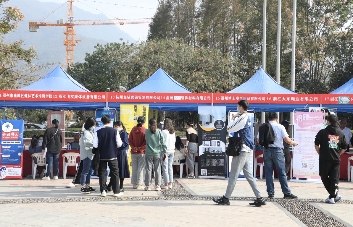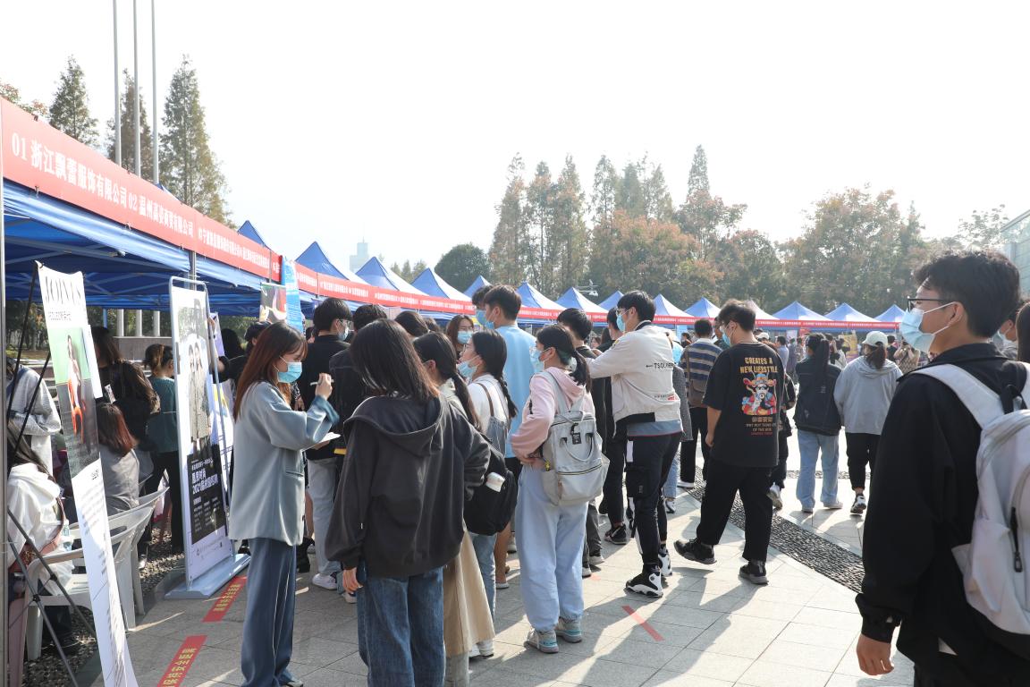 2020年11月8日下午,公司2021届毕业生专场招聘会于老员工活动中心广场顺利举办。招聘会上,来自上海、杭州、宁波、台州、嘉兴等地区的64家单位,携2000余个岗位广揽英才,吸引了服装、设计、美术等校内外近千人才参加,其中太阳成集团tyc151cc瓯江学院艺术设计分院、在温高职院校相关专业毕业生到会参与,场面热闹而有序。