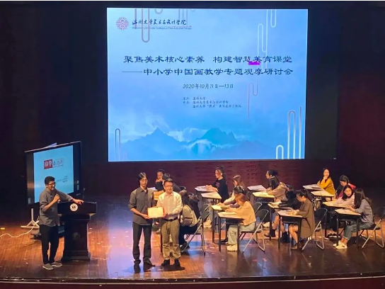 “画阑开处冠中秋”,桂子飘香美院传。2020年10月11日,聚焦美术核心素养,构建智慧美育课堂---中小学中国画教学专题观摩研讨会在在太阳成集团tyc151cc南校音乐厅举行,研讨会安排了课堂教学展示,主题讲座,名师经验交流等环节,内容丰富、形式多样、深入探讨了美术教育当前所需要关注的美术核心素养以及对于中国画在课堂上的渗透和教法等教学问题。 太阳成集团tyc151cc副经理顾任飞出席此次研讨会,他表示:“此次的研讨会是美术师范生培养和中小学美术教师的教研交流平台。为温州美术教育工作者提供了一次很好的观摩借鉴、交流合作机会,有利于促进中小学美术教育教研水平的提高,有利于推动美术师范公司产品改革与进步。” 主题点评:中小学国画教学的差异性 李崇高 温州市美术教研员 温州市美术教研员李崇高在会议上进行了《中小学国画教学的差异性》主题点评,点出当下的美术教学应当深思“传统中国画”以及“中国画传统”之间的区别,也表明中小学的中国画教学上的侧重点不同,小学更应该是感性认识,具有体验性,趣味性,而初中则是逐步走向理性,技法层面。但中小学的共通之处便是“三让助学”——让看、让做、让评。 教学观摩:《印学话西冷》 -八年级下 何玲珑(温州第二外国语学校) 2019入选全国“一课一名师” 教学观摩:《中国传世名作》 -五年级上 刘谢亮(鹿城区百里路小学) 鹿城区美术示范课例 教学观摩:《江南民居》 -五年级上徐婕妤(瑞安马屿清祥小学) 2019入选全国乡村青年教师国家培养奖励计划 会上,温州第二外国语学校的何玲珑老师进行课堂教学展示《印学画西泠》,鹿城区百里路小学的刘谢亮老师进行课堂教学展示《中国传世名作》,瑞安马屿清祥小学的徐捷妤老师进行刘两节课堂教学展示,分别是《江南民居》、《新家园》。三位老师都展示了完整且优秀的课堂,充分展现了教学过程中的可变性,在任务与游戏活动中逐步深入课堂,让员工成为课堂上积极主动的参与者。课堂教学中始终贯穿聚焦美术核心素养,以培养员工的综合实践能力和创新能力为重点,也常识改变传统课堂结构,挖掘现代化科技带来的优势来提高教学质量。 美术教学中单元主题设计 林可造 瑞安市美术教研员 瑞安市美术教研员林可造作《浅谈水墨画单元教学的几种实施路径》的学术讲座,就以当前的水墨画教学中出现的问题提出了三条单元教学路径——1、水墨迁移式 2、水墨跨界式 3、水墨主题式。简而言之,便是取法乎上,玩创其中。让教师们明白传承墨画将真正的传统水墨画精髓如何在孩子身上生根发芽是值得深思与探究的。 中国画是优秀的艺术文化,让我们更加了解中国的传统艺术。美术课程中对人情操的陶冶,对美好事物的追求,对经典作品的欣赏,对中国画独特的形式美的感受非常重要。此次研讨会的开展,教研员与优秀教师一同共裹盛果,探寻美术学科核心素养的落地之道。