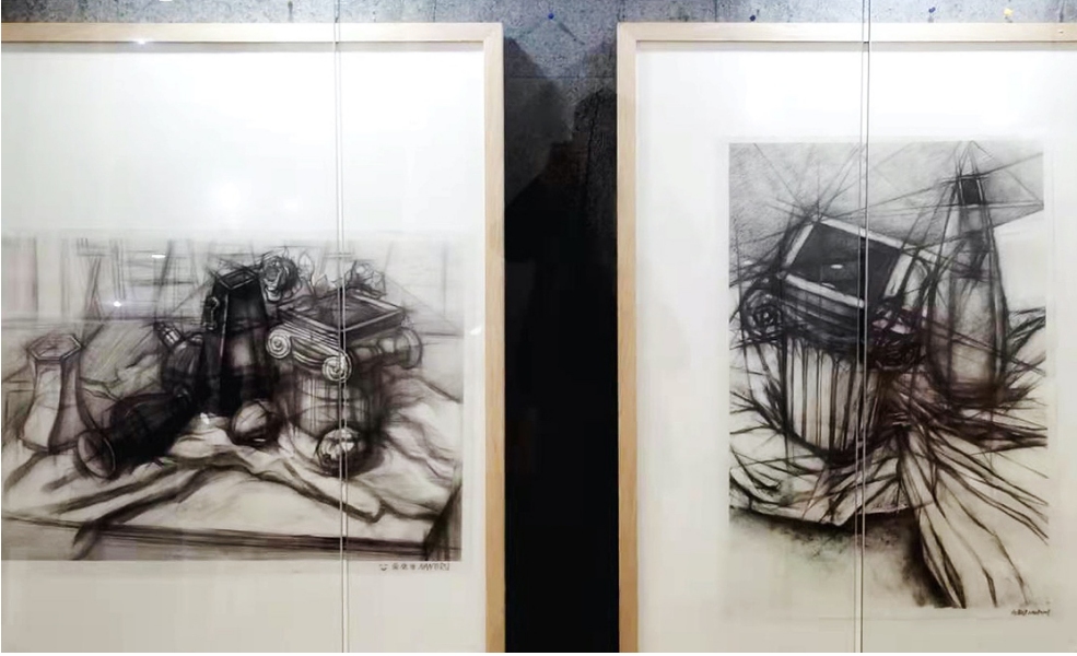 素描作为传统的绘画科目,这一看似“稀松平淡”的主题却可以承载丰富的文化与精神内涵。基础素描的训练对于绘画专业的重要性不必赘述,它对于刚步入专业学习的设计学子来说,同样是十分重要的。通过这样一场直面写生的“操演”,带给他们的,既是对造型空间、构造、质感、节奏与布局等基础造型方面的理解和启发,同时更为重要的是使这些刚刚步入专业学习的同学们具有一种基本的审美眼光,凭借这样一种素养来捕捉视觉的丰富感受,从而为以后深入的专业化学习找到一个相对有利的铺垫。