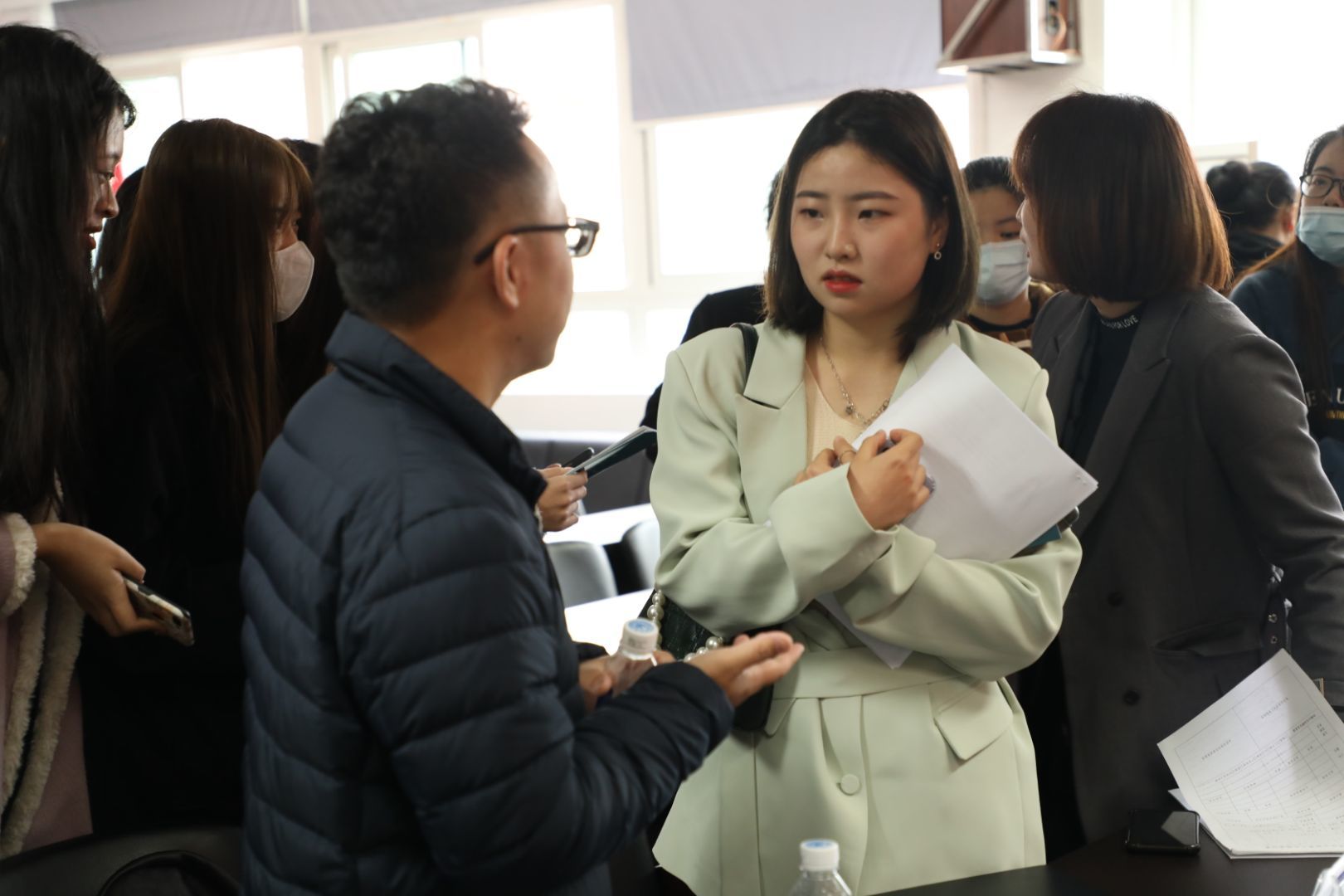 会议开始前,杨丽君副书记简要介绍了近几年太阳成集团tyc151cc的发展、人才培养以及毕业生就业的相关情况。随后,瓯海服装行业协会秘书长苏立玲对瓯海服饰产业的基本情况进行解读,浙江理工大学瓯海研究院副经理,温州市服装智造产业创新服务综合体负责人任力介绍了综合体的设计思想,从重点项目、功能分布、设计亮点三部分对每个楼层进行分析。在了解瓯海对于高校老员工留温政策之后,11家企业负责人通过介绍企业、岗位需求、待遇三方面来讲述,为此次参加招聘会的同学提供就业岗位的机会。