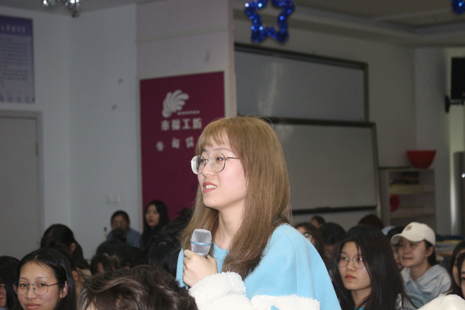 讲座氛围非常热烈,同学们在会上积极表达和交流自己存在的困惑。有同学因为考前焦虑提问的,也有人带着对未来方向的迷茫提问的,更有同学表示因为不知道自己内心真正的需求而感到痛苦。张老师建议同学们,目前最需要的其实是“积极基因”的注入,同时找到解决痛苦的根源,也就是自己的不满足之处。首先是按照能做好的、想做的、真正想做的、真正想做并擅长的维度发现自己内心真正的需要,并努力满足;其次则是学会接受自己,包括自己所有的缺点和不足。此外,张老师就人际交往这一方面与同学们进行了深入的交流,她传授我们人际沟通的技巧,引导员工如何爱自己爱他人,包括情感受挫后的自我成长。