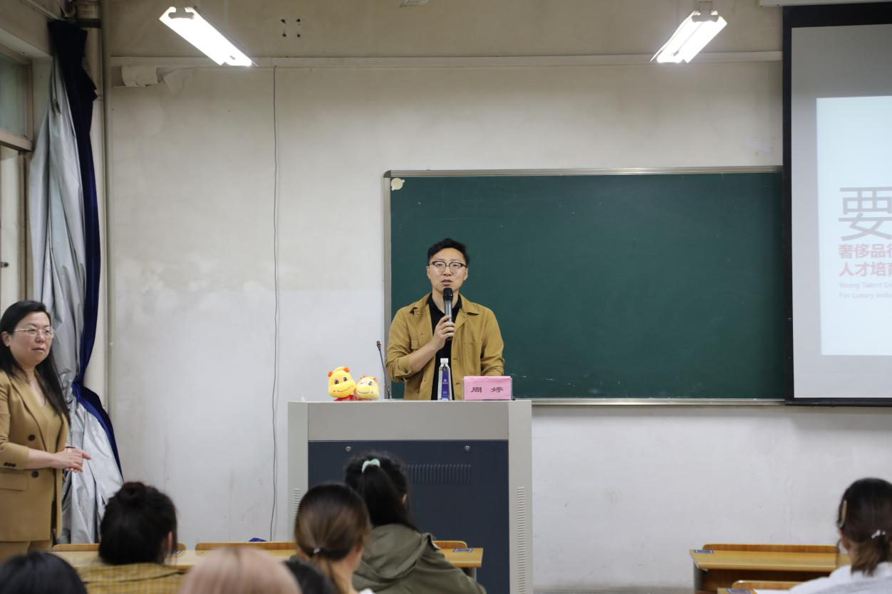 至此,讲座接近尾声,周婷博士对准备就业实习的同学提出了建议,并给在座的同学们留下暑期奢侈品岗位实习的机会。