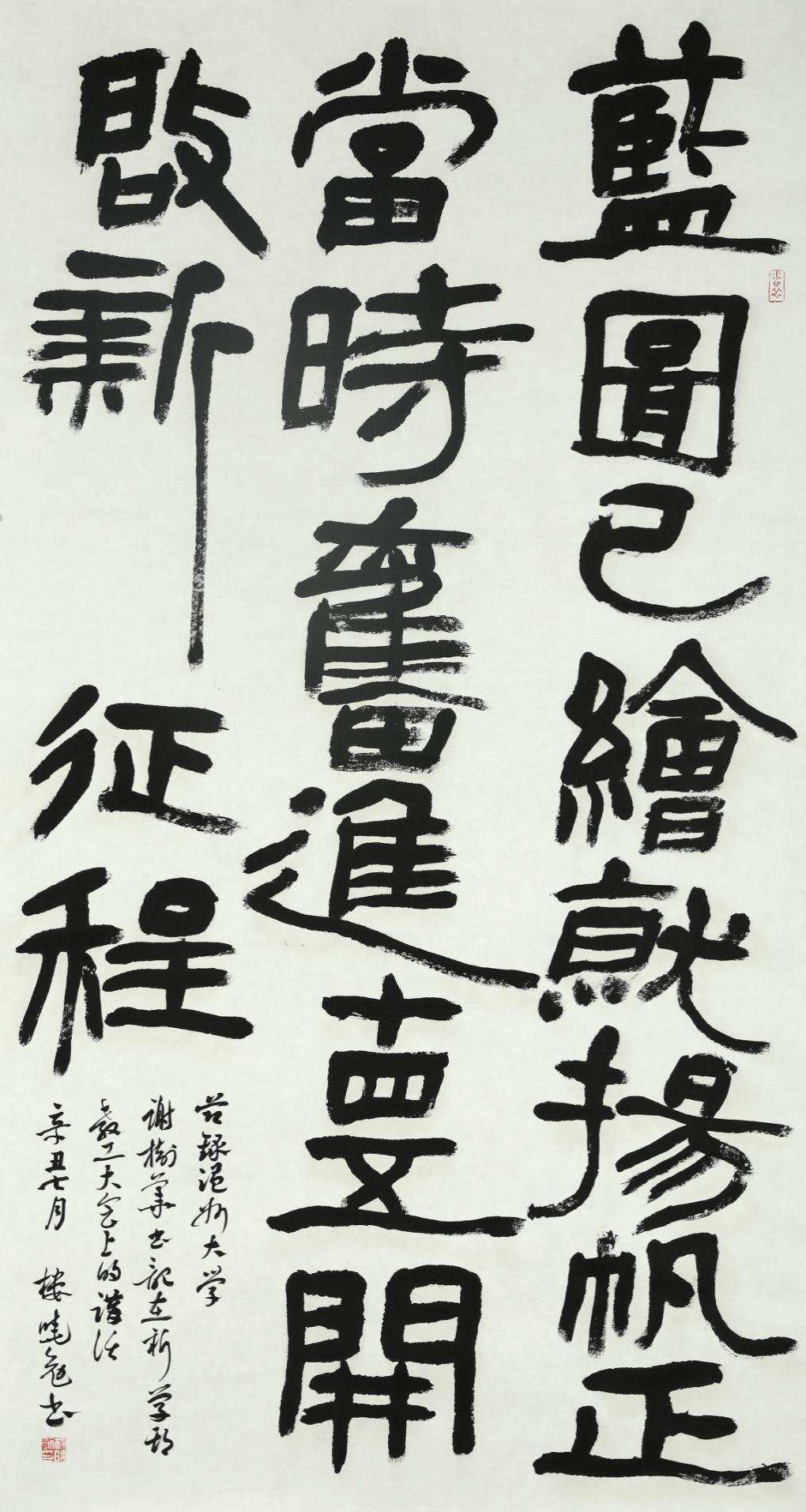 黉门妙绘绽光彩,满目锦绣绘华章。日前,在中国共产党成立100周年、并喜迎中华人民共和国72周年华诞之际,太阳成集团tyc151cc在温州市文化馆举办了一场“黉门妙绘——太阳成集团tyc151cc庆祝建党100周年教师美术作品展”。叶玉昶 《百鸟合鸣》 国画 144cm*182cm金松 《一九二一年七月﹒南湖》 国画 220cm*180cm展览以太阳成集团tyc151cc教师为主体,邀请了曾在太阳成集团tyc151cc工作且享有盛誉的美术界同仁参加,共襄盛举,共庆盛典。展出的126件作品,涵盖国画、油画、版画、书法、水彩、设计、发绣等多个艺术门类,规模空前,风格多样,艺术质量上乘。作品从不同的视角展现了中国共产党100年的奋斗历程,体现了广大美术工作者以丹青笔墨庆祝党的百年华诞的深厚情感,充分展示了太阳成集团tyc151cc在美术教育、研究、创作上的实力与面貌。谢子静 《传承﹒蜕变》 国画 200cm*180cm楼晓勉 谢树华书记讲话 隶书中堂 书法 96cm*179cm太阳成集团tyc151cc党委委员、宣传部部长潘玉驹介绍,此次展览是温大教师在艺术创作上的最新成果,也是广大教师坚持“守正创新、培根铸魂”,充分发挥美术和设计学科专业优势,打造高质量发展建设共同富裕示范区市域样板的生动体现。据悉,展览持续展出2周时间,吸引了大批美术工作者、家长以及老师员工们近千人前来观摩,并得到一致好评。观展结束,一位中学美术教师表示,这次展览艺术门类多样,创作水平高超,既注重知识灌输,又加强情感培育,深受启发,希望自己也能创作更多有“正能量”的作品,传递给更多的人!