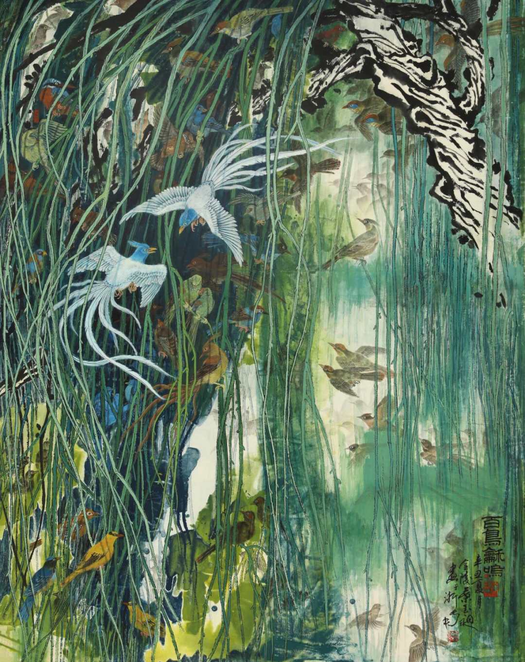 叶玉昶 《百鸟合鸣》 国画 144cm*182cm