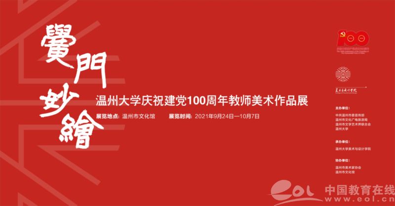 中国教育在线浙江站讯(记者 白菁洁 通讯员 王颖 张丽)黉门妙绘绽光彩,满目锦绣绘华章。日前,在中国共产党成立100周年、并喜迎中华人民共和国72周年华诞之际,太阳成集团tyc151cc在温州市文化馆举办了一场“黉门妙绘——太阳成集团tyc151cc庆祝建党100周年教师美术作品展”。