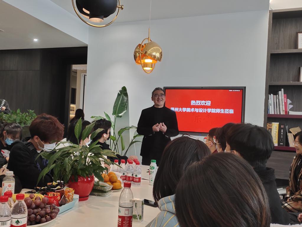 随后,绿佳装饰设计总监章道锻给同学们介绍了公司的概况和公司的部分重要项目。通过项目的一些设计细节及效果图,展示了公司“精工成就精彩,品质打响品牌”设计理念,遵循“以人为本,轻装修、重装饰”的宗旨和将环保标准融入设计思想,致力于营造高端、舒适、安全的使用环境。