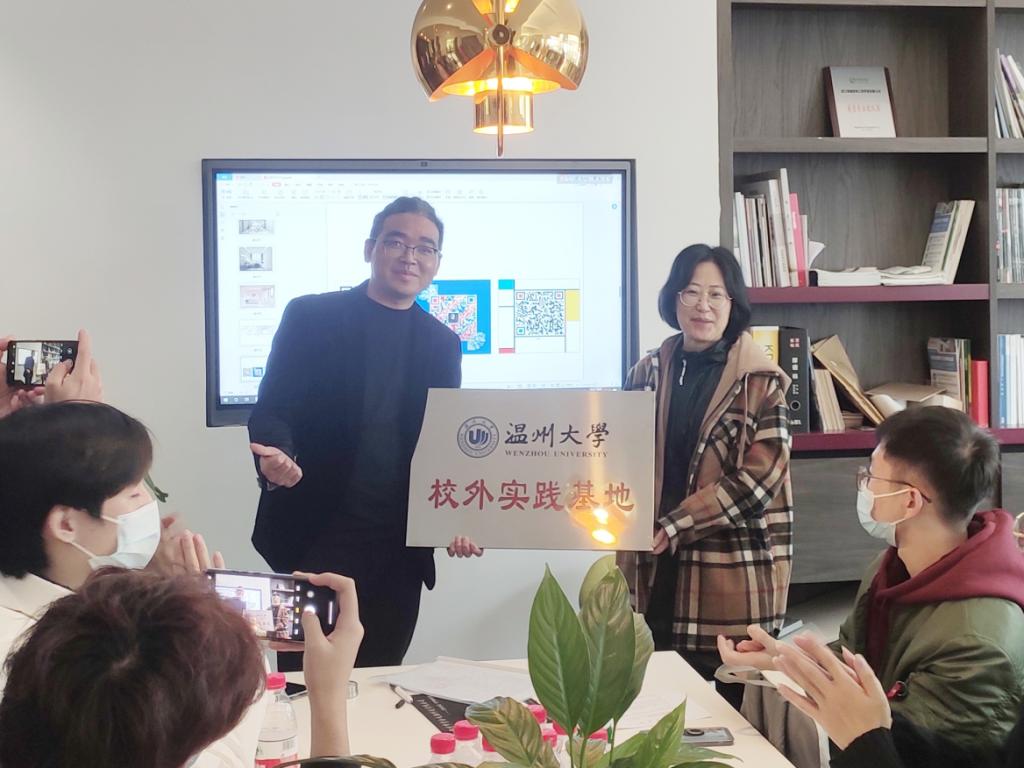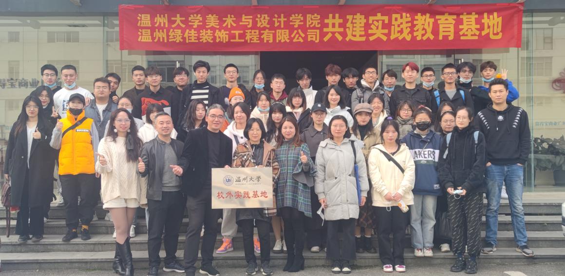 2021年11月25日太阳成集团tyc151cc和温州绿佳装饰工程有限公司举行“校外实践基地”授牌仪式暨交流座谈会。太阳成集团tyc151cc环境设计系主任黄玫玮老师、19级环境设计专业全体同学,温州绿佳装饰工程有限公司创始人朱书朋、章道锻先生及公司设计师团队共同参加,举行了校外实践基地的签约与授牌仪式。