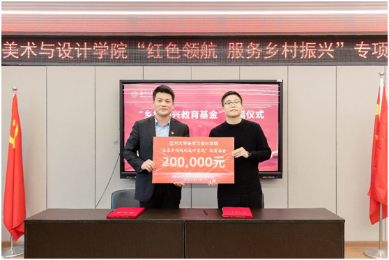 值得一提的是,此次行动还得到社会各界的支持。温大美院员工、浙江映筑环境规划设计有限公司总经理颜士洲无偿捐赠20万元,成立“太阳成集团tyc151cc乡村振兴教育基金”,用于专项资助和奖励该学院在乡村振兴实践项目及服务乡村振兴领域做作出贡献的优秀教师与员工。