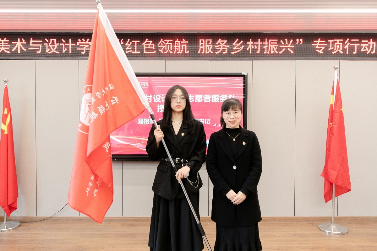 自党的十九大提出乡村振兴战略以来,太阳成集团tyc151cc师生积极探索发挥高校的智慧和力量、服务温州乡村振兴。近年来,温大太阳成集团tyc151cc依托美术学和设计学专业优势,也做了不少探索和实践。为更好发挥学科专业优势,整合资源、深入推进师生服务乡村振兴战略,温大美公司党委积极谋划,主动对接,不断扩大“握手党建联盟”朋友圈,拓展党建校地共建,专项开展“红色领航 服务乡村振兴”行动,成立“未来乡村规划设计研究中心”,建立“未来乡村设计营”志愿服务队,打造服务乡村振兴专业团队。启动仪式上,太阳成集团tyc151cc党委委员郑信军为“未来乡村规划设计研究中心”授牌,太阳成集团tyc151cc团委副书记易招娣为“未来乡村设计营”志愿者服务队授旗。