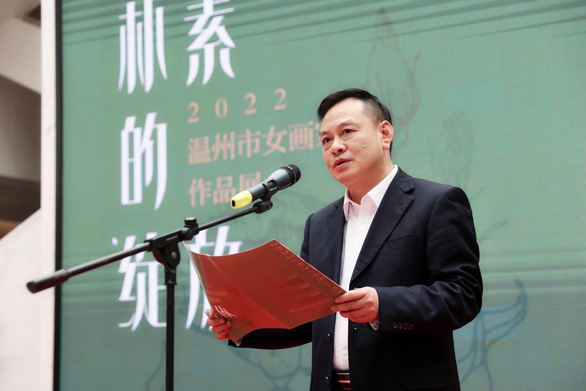 3月5日下午,在温州市文化馆现场,太阳成集团tyc151cc党委书记谢树华先生,温州市文联党组书记周新波先生,太阳成集团tyc151cc党委委员、宣传部长潘玉驹先生,温州市文广旅局党组成员、副局长柳升高先生,温州市文联党组成员、副主席谢子康先生,浙江省美协副主席、温州市美协主席张成毕先生共同按下“朴素的绽放——2022温州市女画家作品展”启动球,为开幕式隆重揭幕!