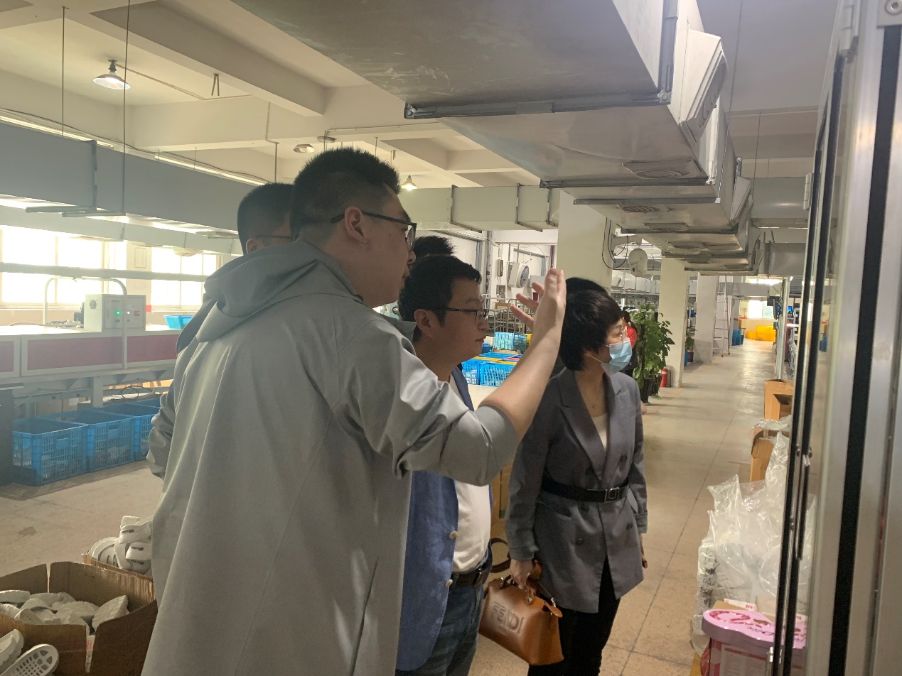 近日,公司副经理顾任飞和党委副书记叶如芳一行前往大东鞋业进行调研交流。大东鞋业研发部经理林一帆、男鞋设计主管何浩和企划主管王炳伟等领导,热烈接待了到访师生。