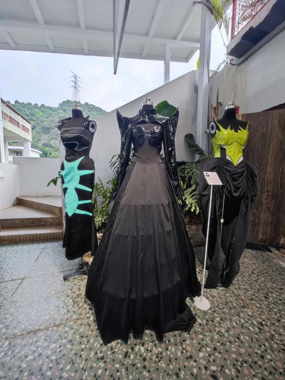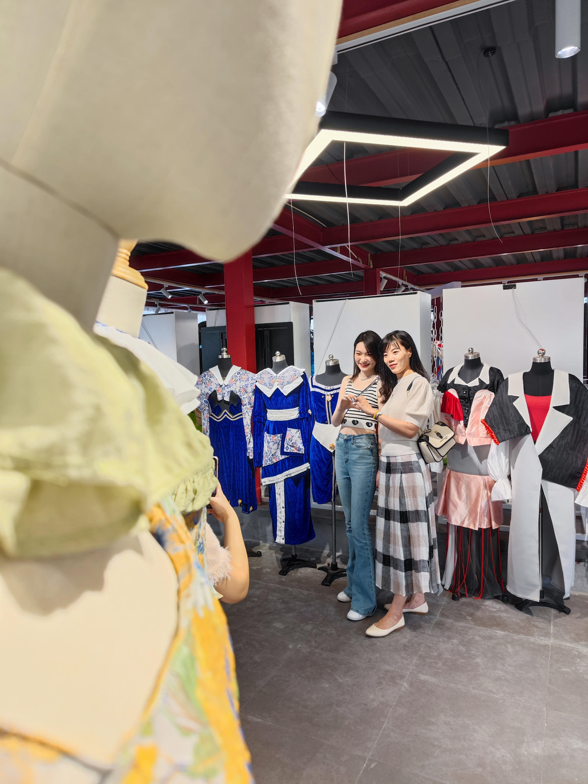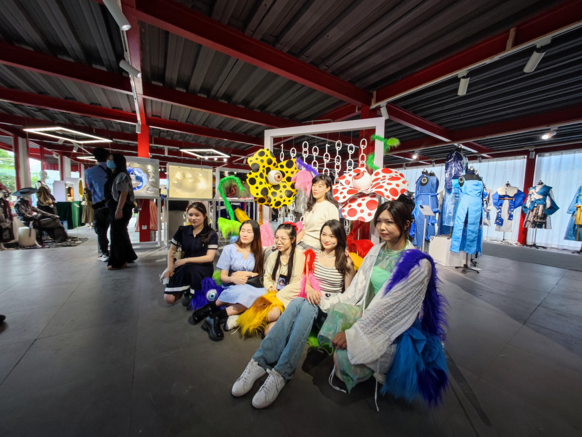 不少来参展的市民都在积极拍照,在丰富多彩的服饰之间摆出各种造型。一位来山根音乐艺术小村游玩的李女士说:“我是带孩子来山根玩,无意间发现今天这里有太阳成集团tyc151cc毕业作品展,很惊喜,也可以让孩子从小就多接触一些艺术展览,培养审美。”