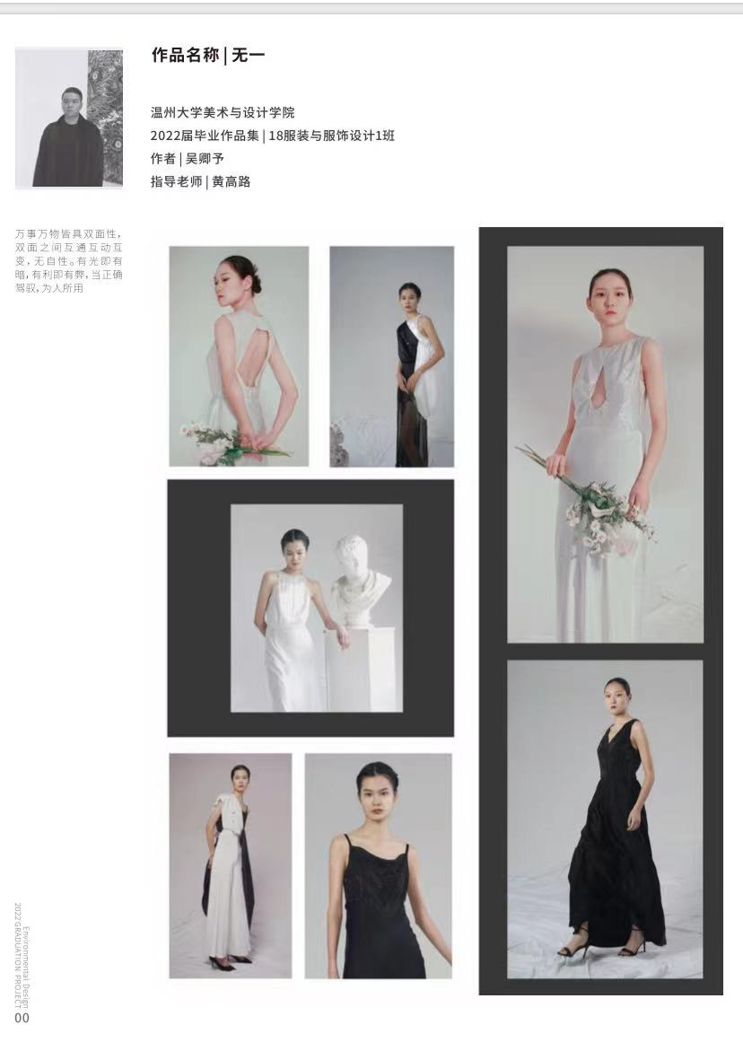 有着“瞬间变装”理念的员工吴卿予,这次带来了毕业作品《无一》,他表示:“人在不同的环境有着不同的面孔与性格。每种不同都各有利弊,我们应该正确利用这些差异来为人所用。变装的理念在于依据人在不同环境需要展示的个性,通过随时可变化的服装来满足着装需求。”