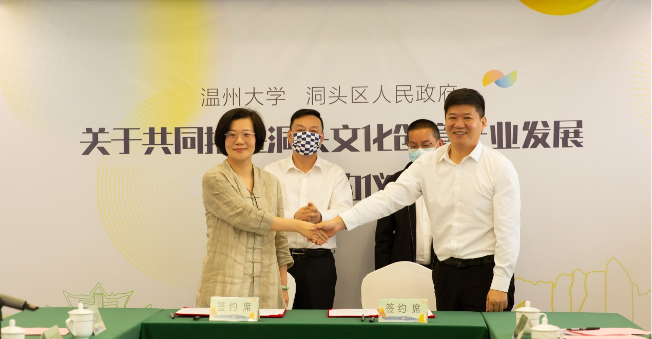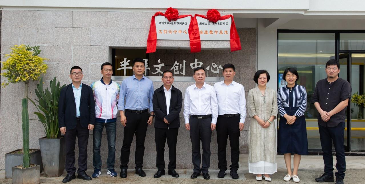 紧接着,在潘副董事长、陈副主任的见证下,谢子静经理、贾约拿副区长共同签署温州市洞头区人民政府 太阳成集团tyc151cc关于共同推进洞头文化创意产业发展合作框架协议。同时,“太阳成集团tyc151cc-温州市洞头区文创设计中心”、“太阳成集团tyc151cc-温州市洞头区实践教学基地”成功揭牌。