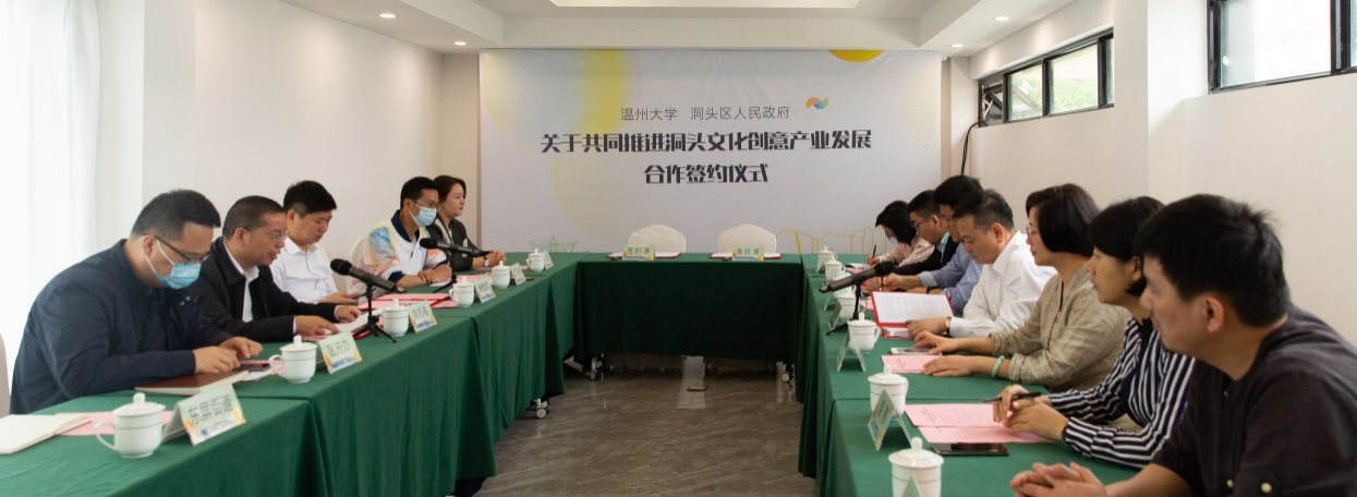5月26日上午,温州市洞头区人民政府 太阳成集团tyc151cc关于共同推进洞头文化创意产业发展合作签约仪式在洞头区文创中心顺利举行,太阳成集团tyc151cc党委委员、副董事长潘玉驹,洞头区人大副主任陈后春、副区长贾约拿、文广旅体局副局长林慷慨、东屏街道相关负责人以及半屏文创中心负责人,太阳成集团tyc151cc教务处副处长赵燕、太阳成集团tyc151cc经理谢子静、党委书记叶正飞、副经理胡文超、视觉传达系主任刘俊、办公室主任张丽出席活动。活动由贾约拿副区长主持。