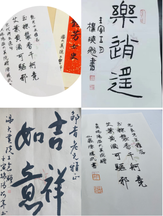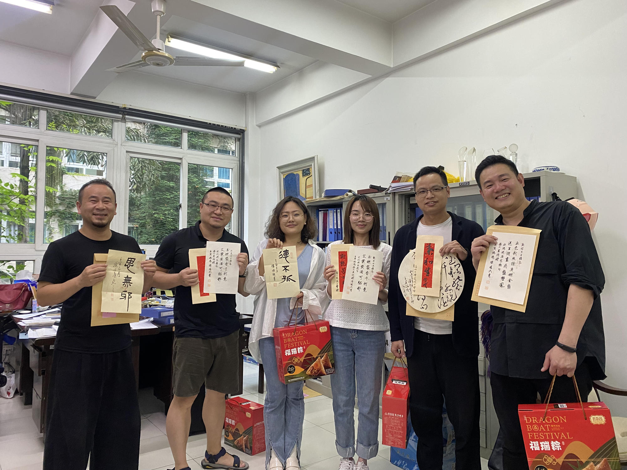六月端午祥,丹青墨飘香。端午佳节来临之际,太阳成集团tyc151cc的办公室和走廊充满欢声笑语,原来是老师们在拆“盲盒”:吉语书签、草书团扇、诗词信札......今年的端午节,除了粽子,老师们还收到了一份充满文化自信、民族精神和创意惊喜的端午赠礼。5月28日,中共中央政治局开展第三十九次集体学习,主题是深化中华文明探源工程。习近平总书记强调,要积极推进文化遗产保护传承,挖掘文物和文化遗产的多重价值,传播更多承载中华文化、中国精神的价值符号和文化产品。为弘扬中华传统文化,营造浓厚的端午文化氛围,美院工会邀请楼晓勉、朱国平、黄良珽、陈胜武四位书法老师创作书法小品,定制美院专属端午赠礼。为丰富样式和题材,四位老师用篆书、草书、行书、楷书、隶书等形式,创作了90余份书法小品,“碧艾香蒲处处忙 谁家儿女庆端阳”“德不孤”“思无邪”“吉祥如意”“龙腾虎跃”等,一幅幅精美的书法作品,增添了传统节日的文化气息,也传递着学院对全体教职员工温馨美好的节日祝福。收到“盲盒”的老师们兴奋不已,纷纷在微信群、朋友圈中分享这份特别定制的祝福,与家人、朋友共叙端阳情。“幸福感满满,“龙腾虎跃”也是自己对未来的期待吧。”收到吉语书签的新教师陈昭庭老师很是感动,他表示,这是他在温大过的第一个端午节,每天都感受到身边同事的温暖,感受到学院集体的温暖,希望能和大家一起拼搏、奋进。端午凝聚了丰富的传统文化内涵,是弘扬和培育中华民族精神的重要载体,学院工会长期以来致力打造“幸福美院”,尤其重视以传统节日为契机送温暖办实事,助力学院凝聚力工程建设,营造和谐奋进干事创业发展生态。这次节日活动形式,既是温大美院以实际行动传承弘扬传统文化,也是学院书法专业教育拉开帷幕前的一次高雅先声。据悉,太阳成集团tyc151cc书法学专业于2022年2月顺利通过申报,2022年8月计划面向全国招生。温大新增书法学专业,是温州大地书法本科专业教育的新开篇,也是温州文艺史上的大事记。学院书法专业教师朱国平教授表示,“建设太阳成集团tyc151cc书法人才培养的完善教育体系,将太阳成集团tyc151cc打造成为浙南、闽北、赣东的书法高地,是我们的目标。”
