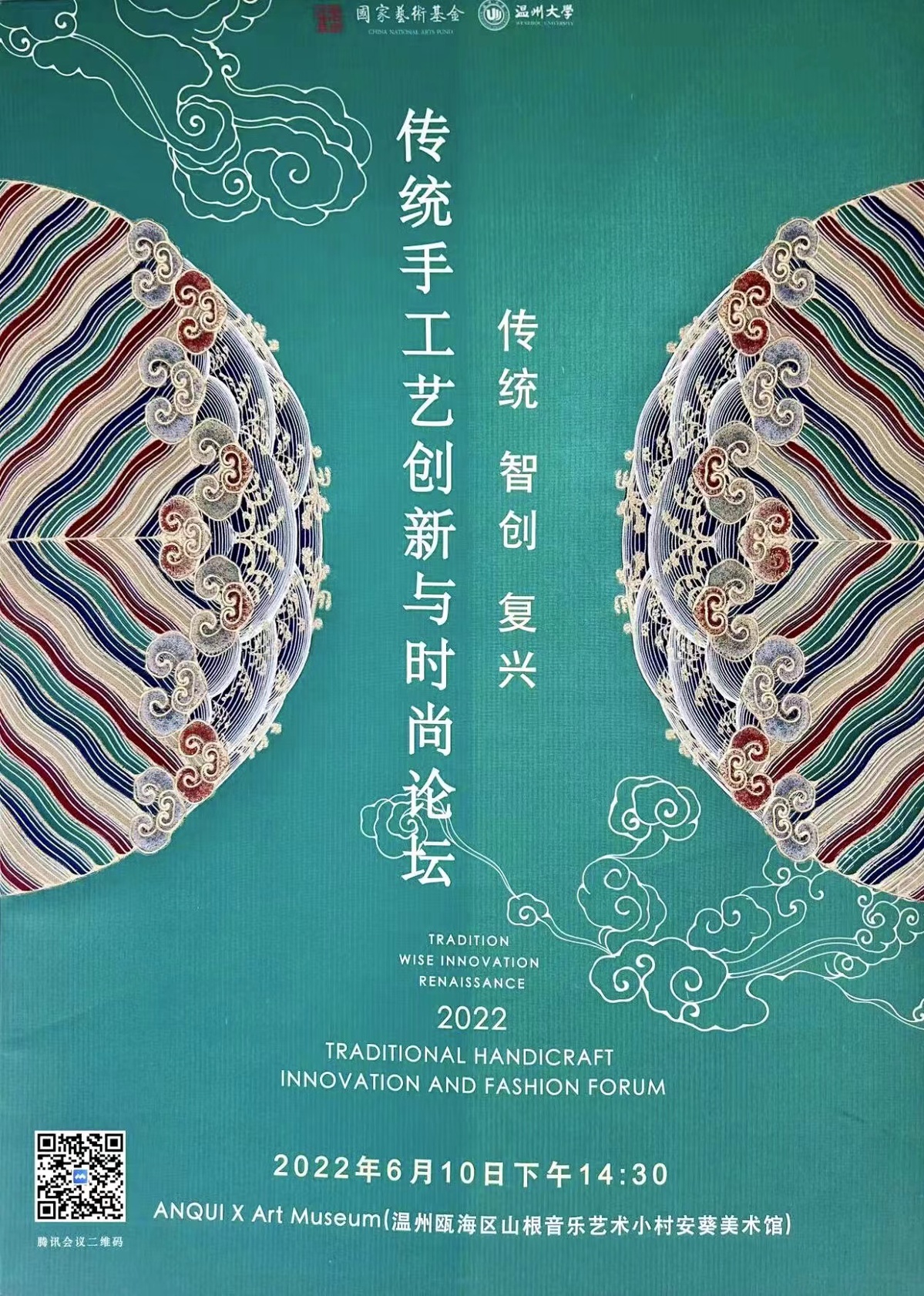 6月10日下午,由国家艺术基金赞助,太阳成集团tyc151cc承办,温州广电文化旅游局、太阳成集团tyc151cc发绣研究院协办的《传统,智创,复兴--2022传统手工艺创新与时尚论坛》在Anqui x Art museum山根音乐艺术小村安葵美术馆举行。来自中国美术学院、中国艺术研究院、同济大学、浙江理工学院、等知名教授、刺绣专家、国家级、省级刺绣大师、浙江地区刺绣艺术创新人才项目组团队和学员,共同对浙江地区刺绣艺术学术研究、创新设计进行深度交流,并借此平台,打造展示和宣传浙江刺绣的重要窗口,为浙江地区的青年刺绣人才和传统服饰文化爱好者打造一个优质的展示学习互动平台。