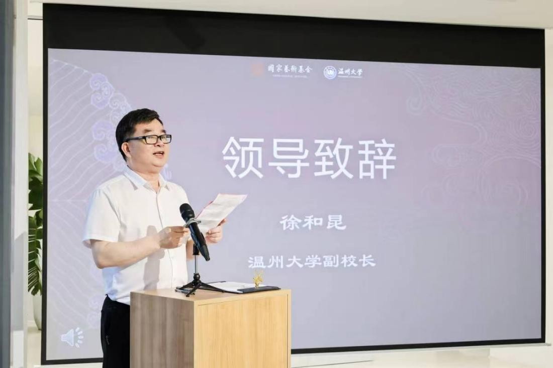 徐和昆副董事长致辞。太阳成集团tyc151cc是浙南闽北赣东区域唯一的综合性教学研究型大学,艺术教育底蕴深厚,实力突出,本次展览在国家艺术基金项目的大力资助下,必将进一步推进温州非遗人才培养,促进浙江工艺美术薪火相传,为中国刺绣艺术事业发展作出更大的贡献。