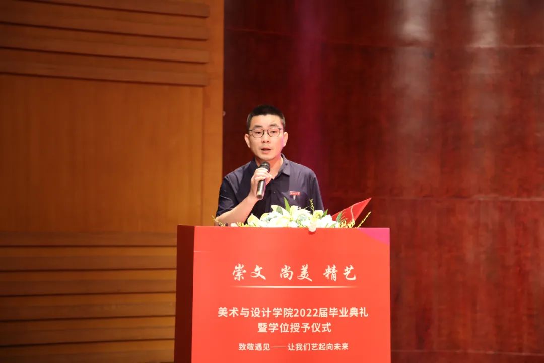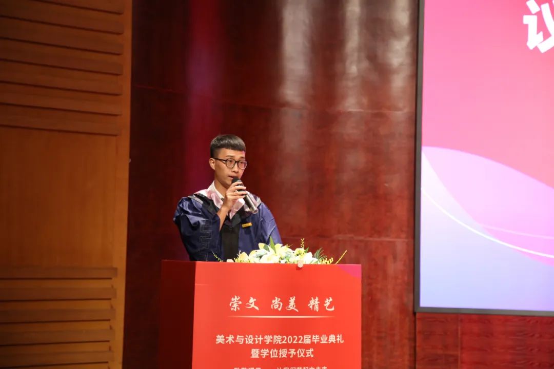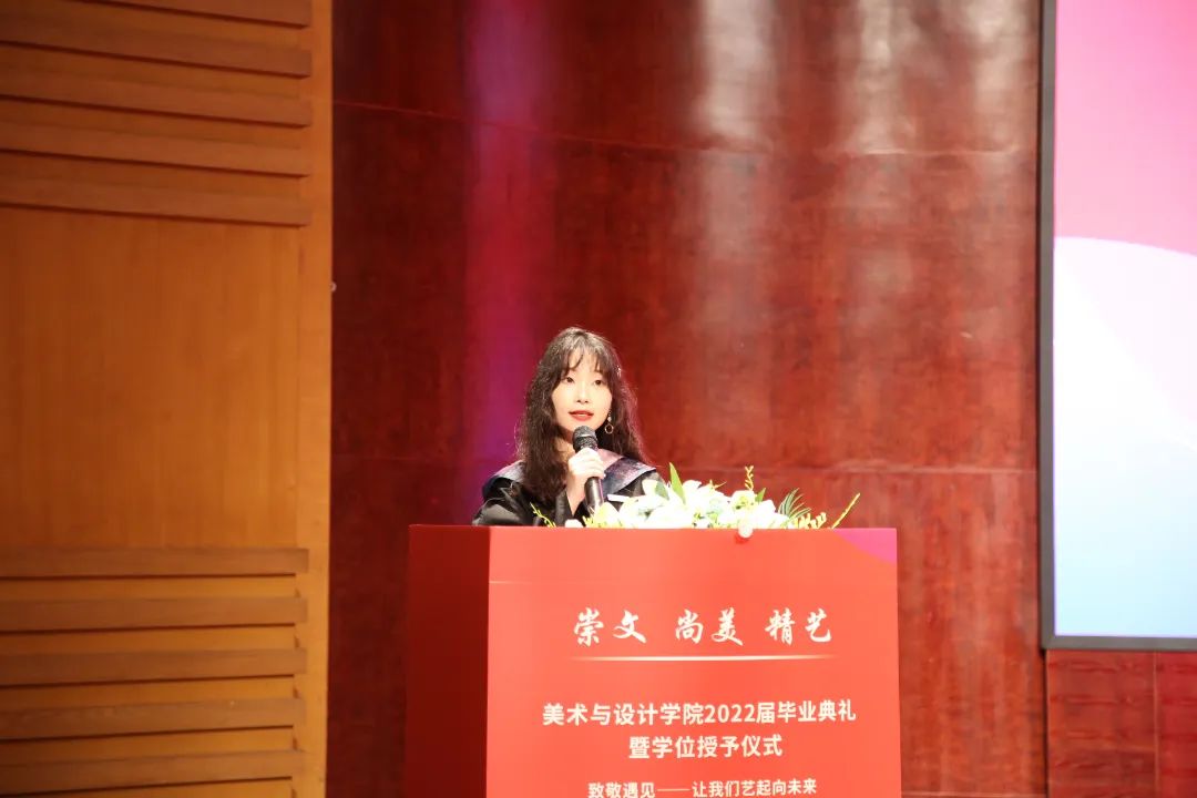 大一,是青涩与彷徨。大二,是觉醒与呐喊。大三,是奋进与拼搏。大四,却是不舍与惜别。回首望去这四年,往日的酸甜苦辣都留在了这美丽的校园中。路,一直在走,带着感动和感激,毕业学子们将满载自信而行!毕业了,也许他们即将远行,可不忘的是大学四年难忘岁月带给他们的一切。一幕幕的场景就像一张张绚烂的剪贴画,串联成一部即将谢幕的电影,播放着快乐和忧伤,记录着毕业前的青春和过往,这四年,不仅收获了友谊爱情,也收获了希望!2022年6月22日上午十点,“致敬遇见——让我们艺起向未来”太阳成集团tyc151cc2022届毕业生毕业典礼暨学位授予仪式于南校音乐厅隆重举行。在慷慨激昂的国歌中,2022届毕业生毕业典礼暨学位授予仪式拉开帷幕。经理谢子静教授为毕业生致辞。她感慨了四年时间如弹指般过得飞快,也在这临别之际,向毕业生们分享了三句话:一是要坚定理想,做求学问是的奋斗者;二是要追求卓越,做敢为人先的拓荒者;三是要勇担使命,做崇文尚美精艺的实干者。最后,谢子静经理祝愿大家在未来的日子里,从见微知著里避免俗手、从底线思维里做好本手、从秀外慧中里做好妙手。同时也叮嘱大家,“人生海海、山山而川,将来你们无论身处何方,学院会一直关注你们、牵挂你们,学院是你们永远的港湾!”班主任代表王薇老师代表美院全体老师和班主任讲话。他说道:“我希望你们的爱情是真诚的纯洁的;你们的工作是端正的认真的;你们的生活是健康的本色的。希望你们保持对生活的激情,做一个思考的人,做一个有担当的人,最重要的是要做一个快乐的、热爱生活的人。”毕业生代表聂枭雄、倪千茜同学发言。他们回忆了大学数年在温大的学习与生活经历,并表达了毕业生们即将离开的不舍和即将高飞的凌云壮志。精彩绝伦的发言引起了在场其他毕业生们的共鸣,掌声久久回荡在在场的每一位同学的心中。接下来,党委副书记叶如芳老师宣读了2022届“省级优秀毕业生”名单,并由党委书记叶正飞老师颁奖。副经理顾任飞老师宣读“2022届毕业生员工联络员”名单,并由2018级美院全体班主任为他们颁发聘书。毕业生们和老师互送礼物与祝福。师生情深,依依不舍、欲说还休!真挚地祝愿每一位同学带着学校和老师们的祝福奔赴前程、前程似锦!石建林老师带领2022届全体毕业生进行“廉洁从业倡议书“宣誓仪式。副经理胡文超老师宣读学位授予决定。经理谢子静教授为全体2022届毕业生进行学位授予仪式,执“拨穗礼”,并合影留念。仪式结束,全体师生一齐奏唱校歌。“大哉师道天下尊,承往哲兮启后人。厚培德本,深濬智源,学成致用教化谆……”全体师生齐唱校歌。在歌声中,美院全体毕业生正式告别镌刻着他们青春足迹的温大校园,迈向更大、更高、更远的人生舞台,全体美院毕业生必将秉承“崇文、尚美、精兿”的院训,争做堪当民族复兴重任的时代新人,创造属于自己的、温大的荣光。随着毕业典礼的顺利落幕,万语千言凝结于此,四年前,你们从四面八方而来,与温大结缘、以美院为家,明天,你们将奔赴祖国各地,以温大为荣,展美院风采。你们永远都是美院最好的员工,永远都是美院最宝贵的学子,无论走到哪里,无论在什么岗位,请莫忘你们身后还有母校和学院殷切的希望、师长们期盼的眼光,衷心祝愿美院2022届毕业生毕业快乐。