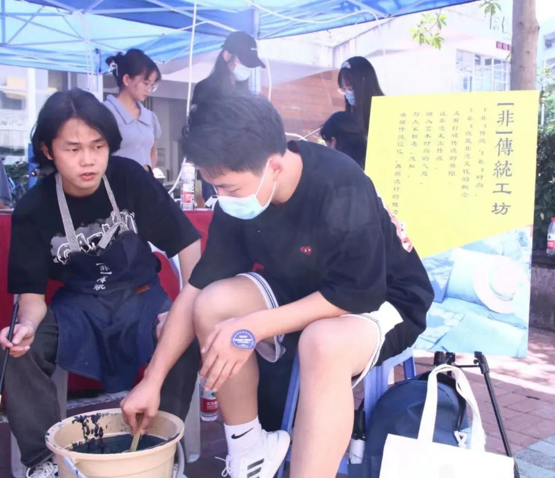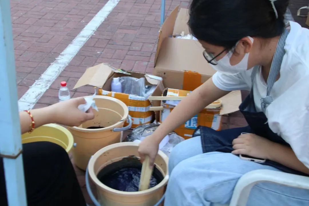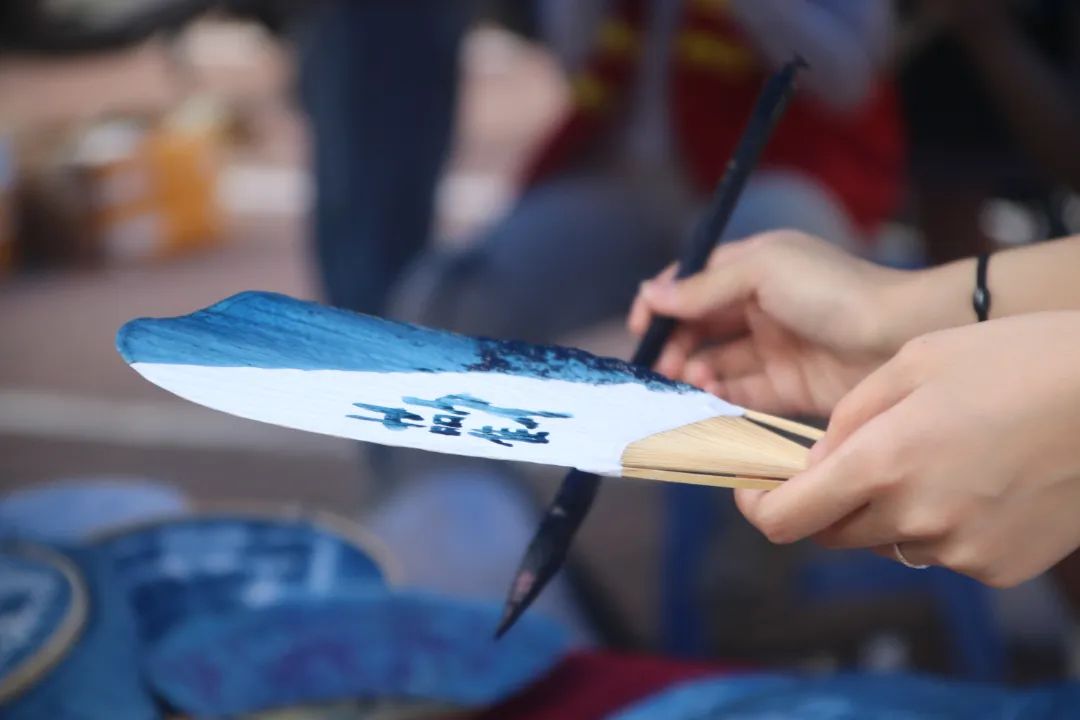在报到处,学院邀请了“非传统工坊”,结合学院的专业特色,带领新生体验非遗传统蓝染文化。以扇子为载体,让非遗走出传统,走进员工生活,融入艺术的时尚气息,唤醒传统的记忆,再现流行的魅力!希望新生可以在体会非遗文化美丽的同时,也感受到我们美院特有的美育气息。