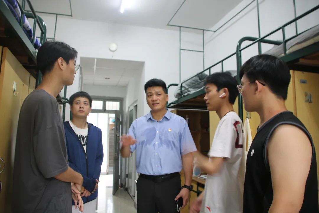 下午,公司党委委员、组织部长郑信军带领学院的全体领导、新生班主任老师纷纷走访新生寝室。老师们亲切地与新同学们交谈,询问大家来自哪里,生活是否习惯、对新环境是否适应等。新生们也对老师们的到来表示热烈地欢迎,师生之间洋溢着温馨的氛围。