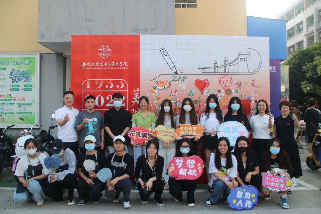 公司还开展了新生迎新现场“手绘祝福”的活动。恰逢2023年是温大校庆90周年,版面中的“wzu art”由圆圈构成,新生们在办理报道后,会在圈内进行绘画,代表着我们温大美院新生报到的活力入驻!90数字结合了飞机的造型,祝福着我们温大可以高飞致远,也祝福着我们温大的莘莘学子能够前程似锦、勇往直前 !