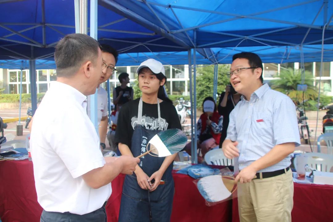 今日,公司党委书记谢树华,公司党委委员、组织部长郑信军等领导也先后来到了迎新报到处慰问和指导工作。表示新生能在这一特殊时间节点可以体验非遗蓝染,这对新生以后的专业兴趣、专业认知以及投身学业会起到重要作用,也对美院志愿者们的热情与服务表示高度肯定!