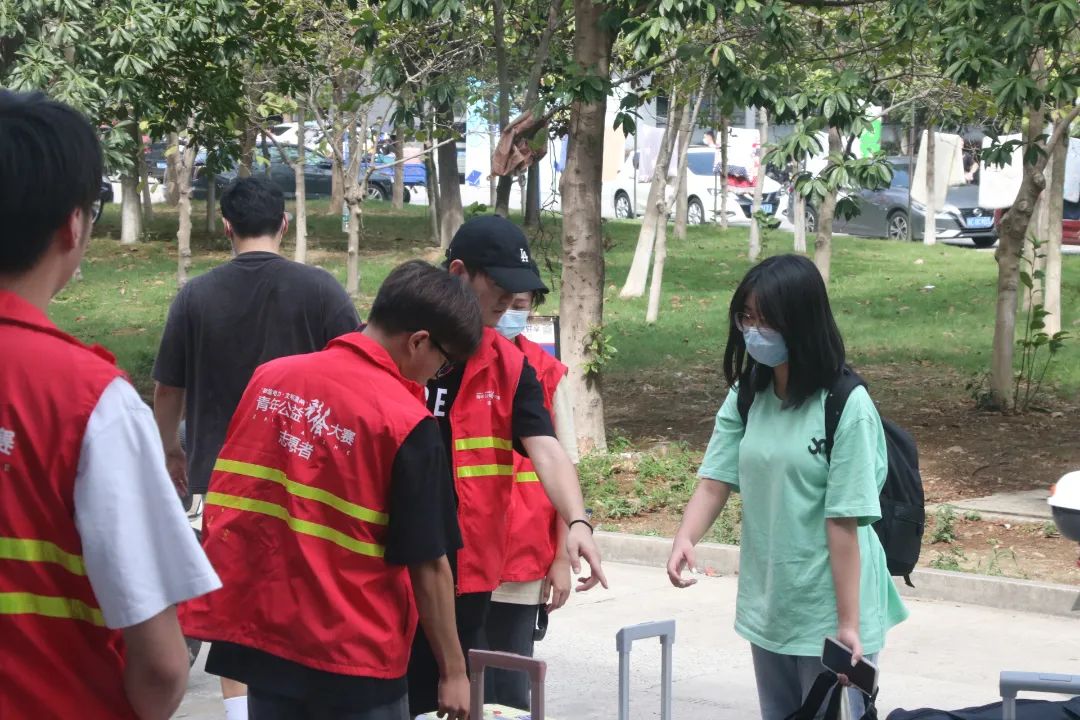 红马甲的身影在人群中穿梭,时刻准备着伸出援手,志愿者为新生们提行李、带路,帮助他们解答疑问。由于疫情的原因,家长无法入校,但是志愿者们辛勤的身影,想必也会给新生们带来一丝温暖,也在踏入大学的新生活中留下浓墨重彩的一笔。