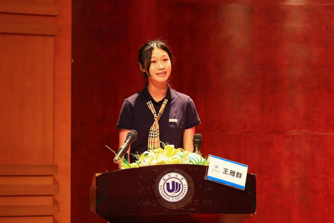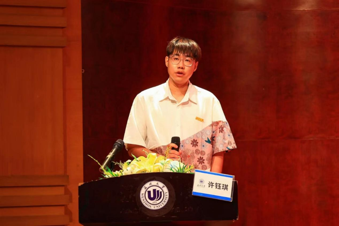 本科生的新生代表王雅群同学回望艺考前日日夜夜的努力,也为成为温大学子的一员而荣幸。希望同学们能够不负每分每秒,活的热烈、活的鲜活,能够拥有攻坚克难的勇气,也能够抓住机遇、遵从内心。希望每一位同学能够践行“求学问是、敢为人先”的校训,在温大的四年生活能够成为每个人人生中浓墨重彩的一笔。