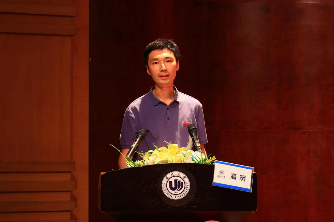 研究生代表许钰琪同学分享了自己考研时走来的路,希望每一位同学都能够在温大找到未来的方向,在这里开始新的人生历程。坚守初心、求真务实,开拓进取、锐意创新,希望同学们可以共勉,学业有成、前程似锦!
