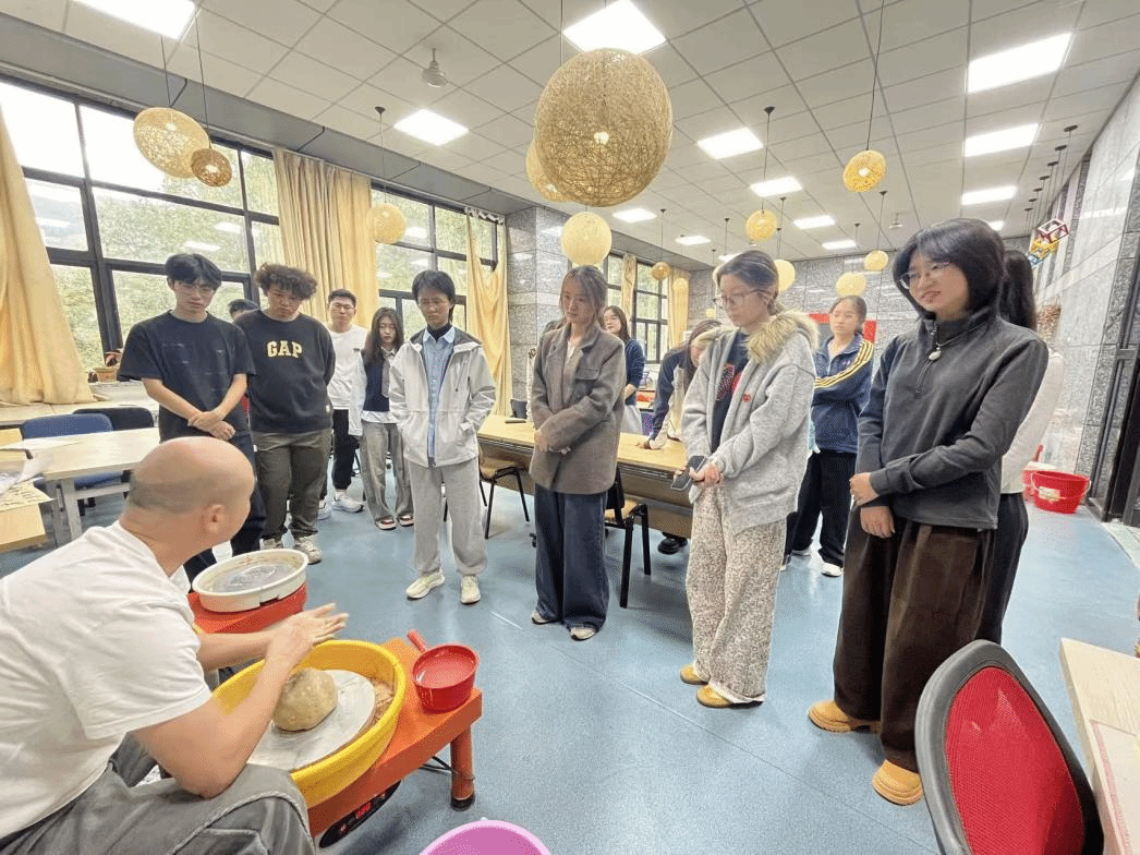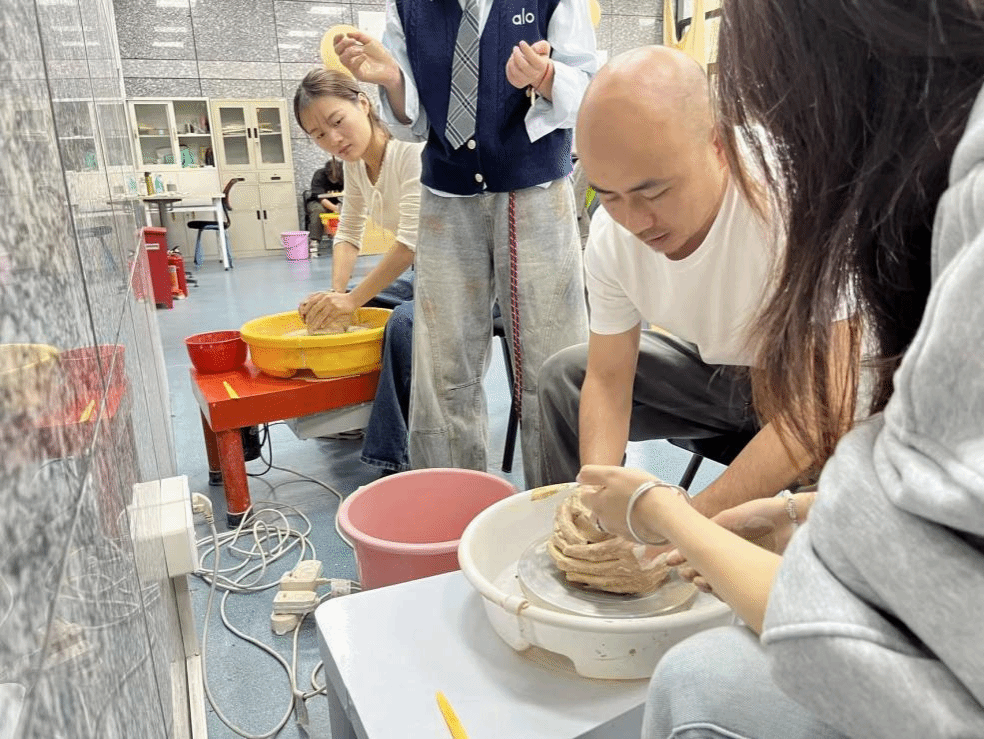 随后,活动进入实践环节。从选土、揉泥到拉坯、修坯,每一步皆是对耐心与技艺的双重考验。在章先生的悉心指导下,同学们亲手抚触陶土,感受其在指尖的细腻变化。